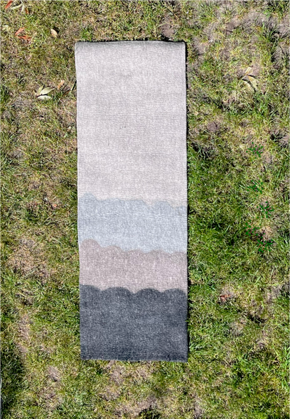 Ontdek een oase van rust en welzijn met onze hoogwaardige gevilt wollen yogamat in de prachtige kleur "Amandel". Deze met de hand vervaardigde yogamat biedt ultiem comfort en ondersteuning tijdens je yogasessies, terwijl het unieke berglandschapontwerp een visuele traktatie is.